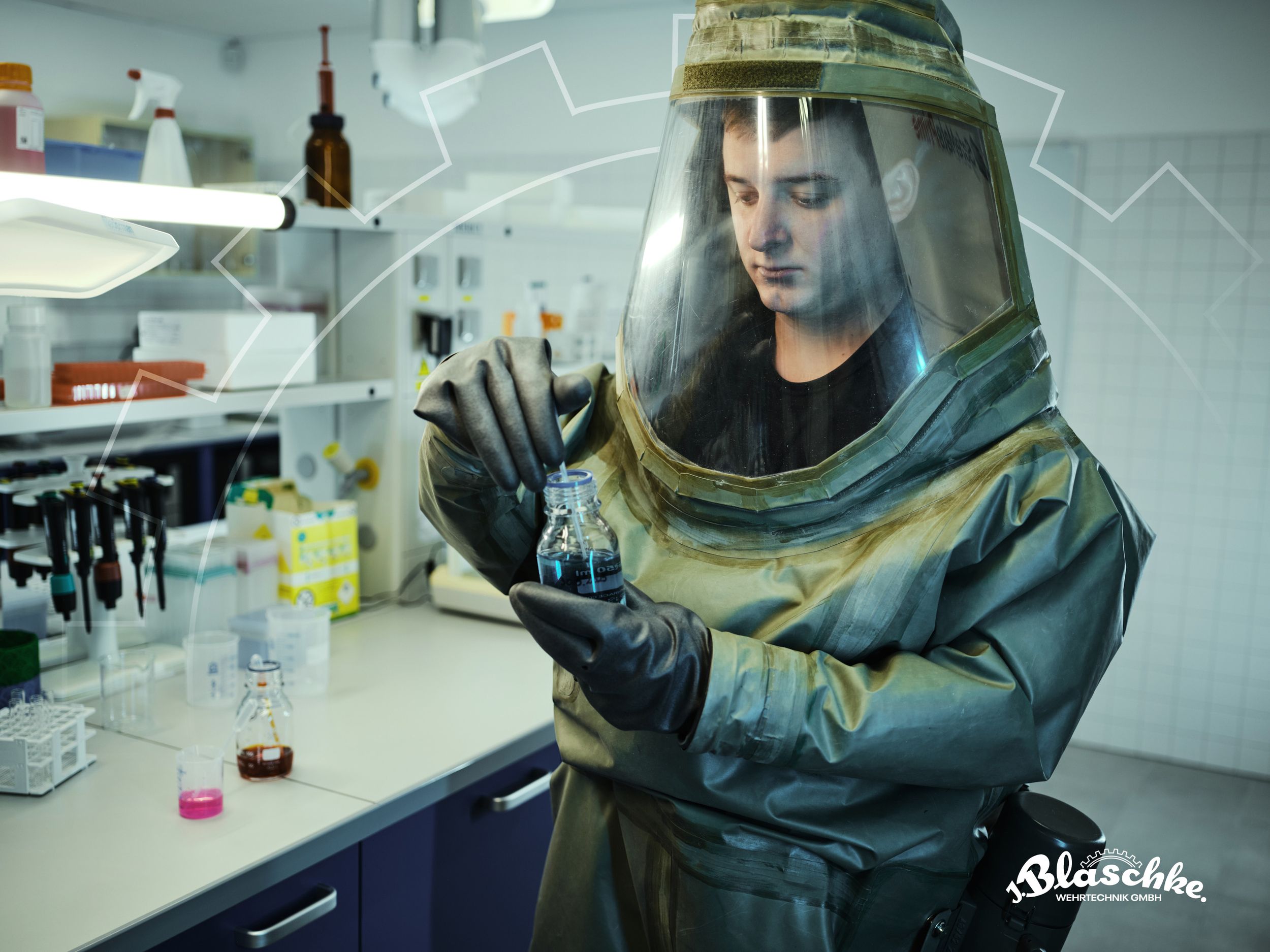 Our suits will be delivered with special rubber wrist cuffs to attach the NBC‑Gloves to the suit.