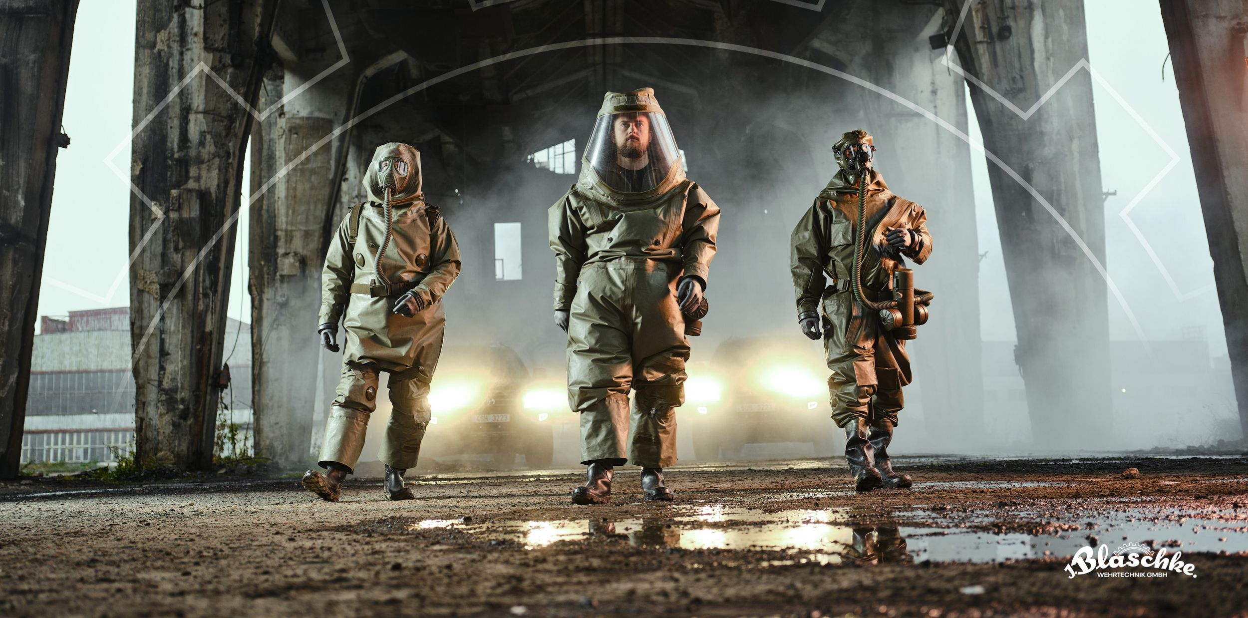 Our Singlet, as well as our Doublet, can be delivered with either fix mounted gas masks (Type per costumer requirement, e.g. Dräger M2000 or Avon C50) or with a rubber sealing frame fitted to the mask.
